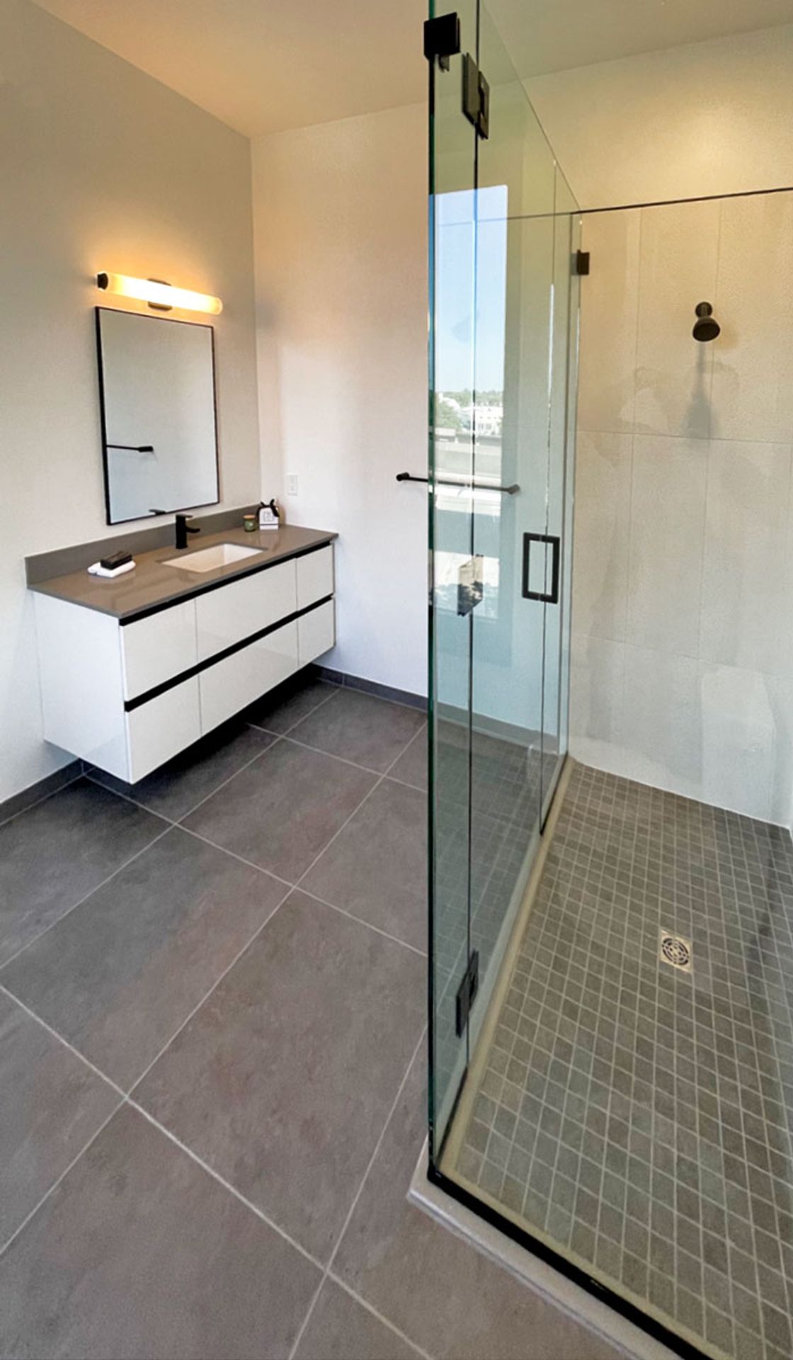 This stunning 1-bedroom, 1-bathroom third-floor loft features soaring 9+ foot ceilings and oversized black-framed windows, flooding the space with natural light and framing picturesque downtown views. Crisp white interiors and rich wood-grain floors (LVT) provide a clean, timeless canvas, perfectly complemented by best-in-class finishes throughout.